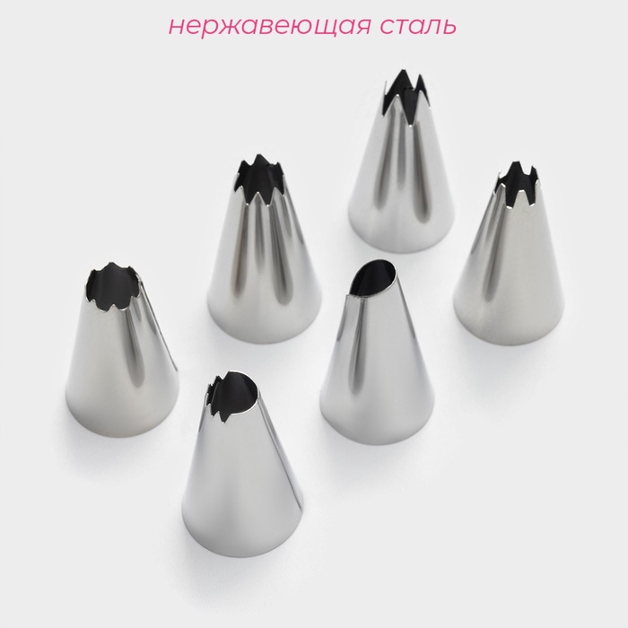 Набор предназначен для украшения выпечки и готовых кондитерских изделий. Наполните мешок айсингом, кремом или мастикой, выберите насадку — и приступайте к созданию кулинарного шедевра!