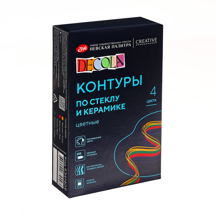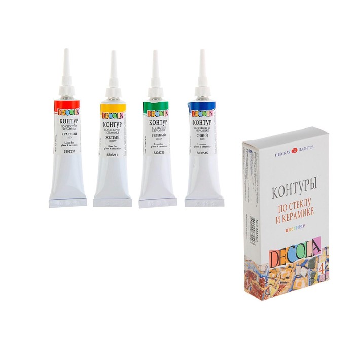 Контуры по стеклу и керамике Decola, в тубах объёмом 18 мл со съёмной конусообразной насадкой.