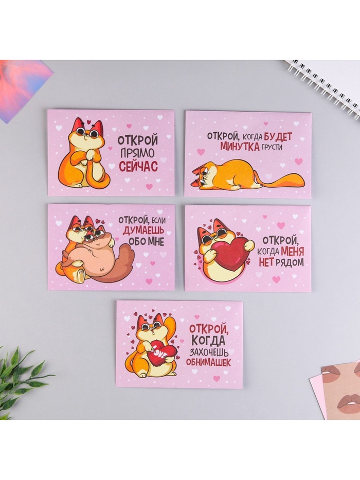 В набор конвертов «Открой, когда…» (Котэ) входит 5 конвертов. Размер конвертов (ширина х высота): 13 х 9 см.