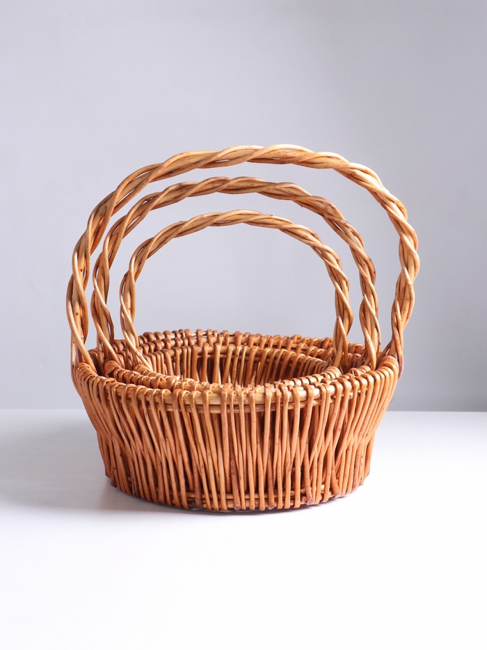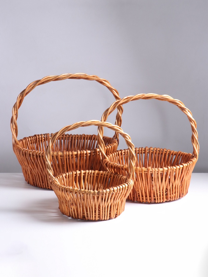 Плетёные корзины – выполнены из цельного ивового прута с продольной ручкой. Имеют прочное основание и боковины. Ивовая лоза обработана специальным защитным средством и покрашена.