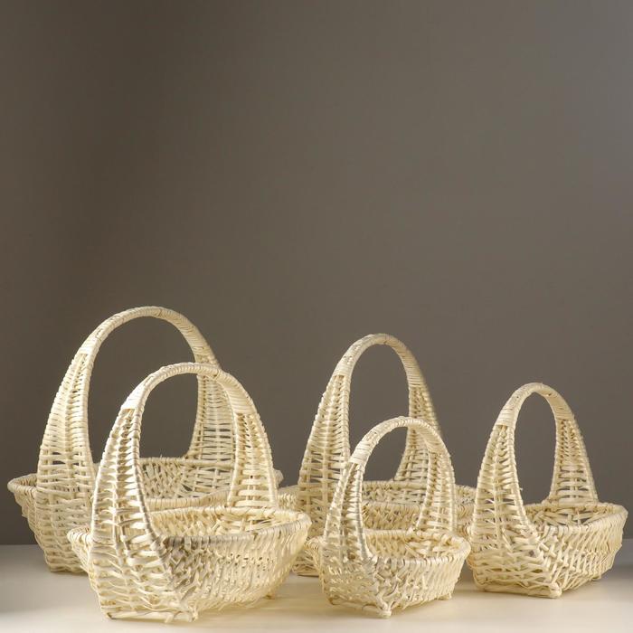 Плетёный набор корзин овальной формы, выбеленные из цельной лозы с продольной ручкой. Имеет приятный внешний вид. При небольших размерах обладает хорошим объемом.