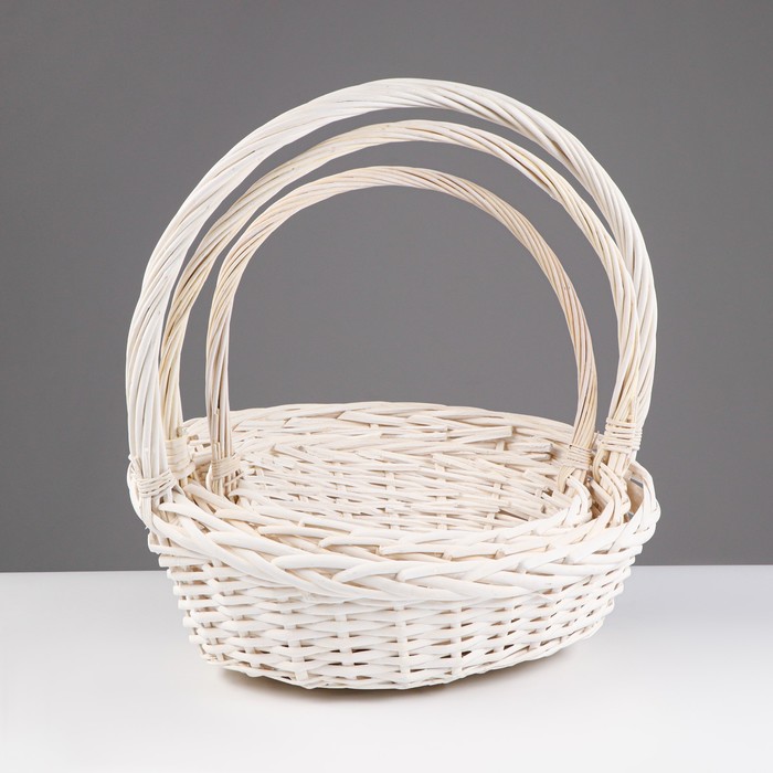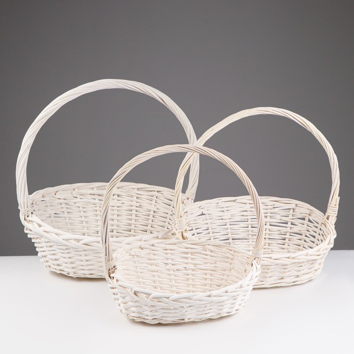 Плетёные корзины – выбеленные из цельного ивового прута с продольной ручкой. Имеют прочное основание и боковины.