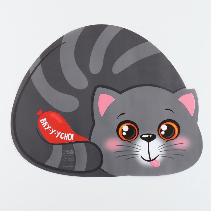 Набор коврик под миску "Вку-у-усно!" + 2 миски пластиковые серые