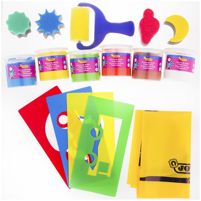 Большой набор красок и аксессуаров JOVI для рисования руками в пластиковом чемоданчике - это настоящий подарок для вашего малыша. Обратите внимание, что товар сертифицирован для детей от 2х лет! Набор составлен специально для первых опытов рисования с учетом возможностей ребенка раннего возраста и включает в себя: