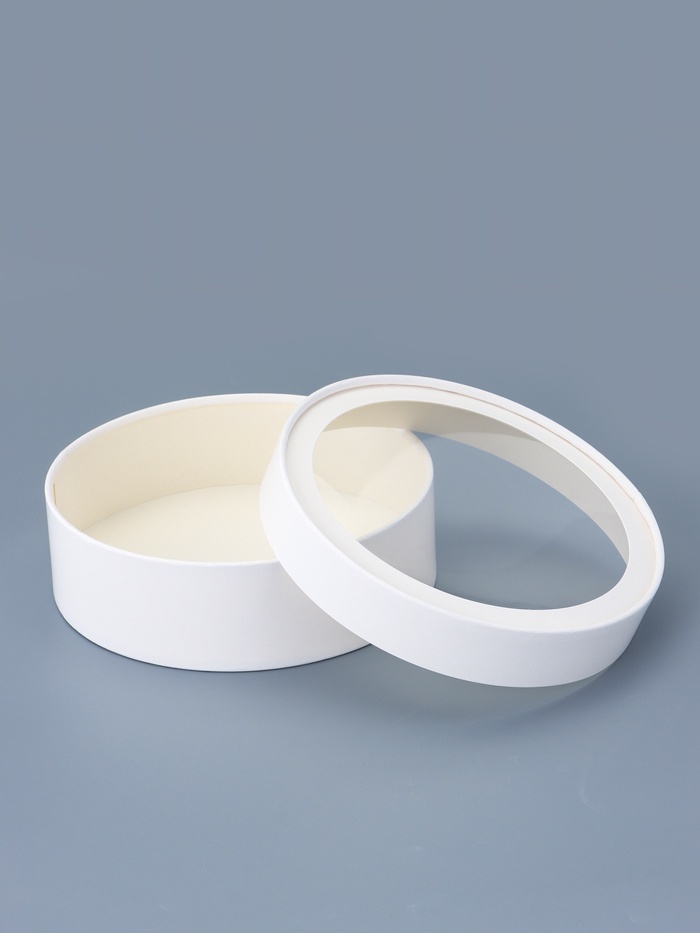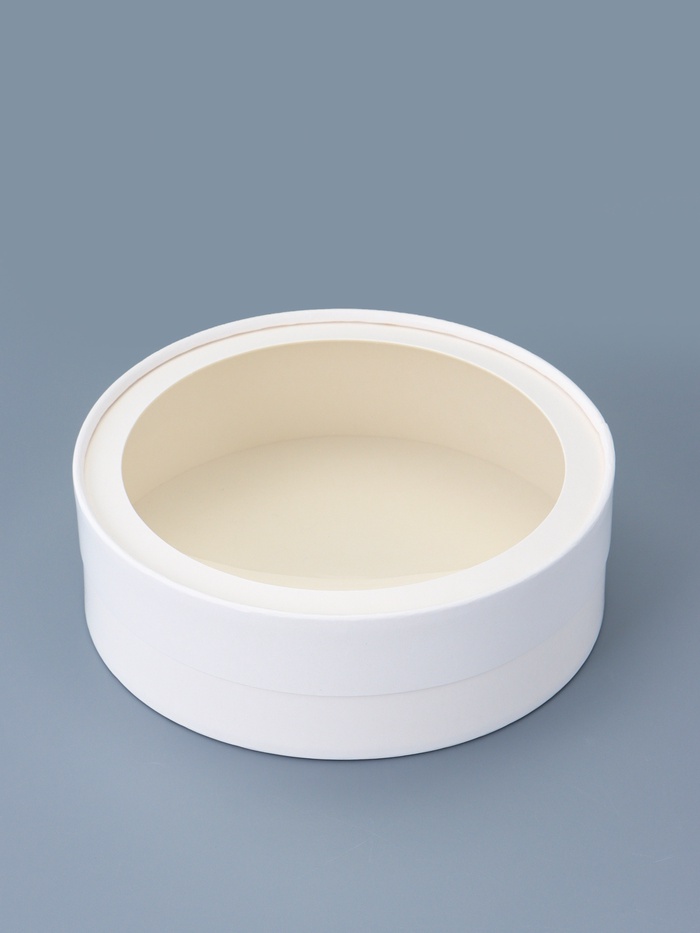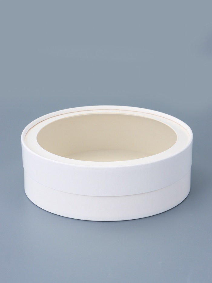 Набор круглых подарочных коробок с окном, завальцованные, белые, 8 шт., 18×6 см