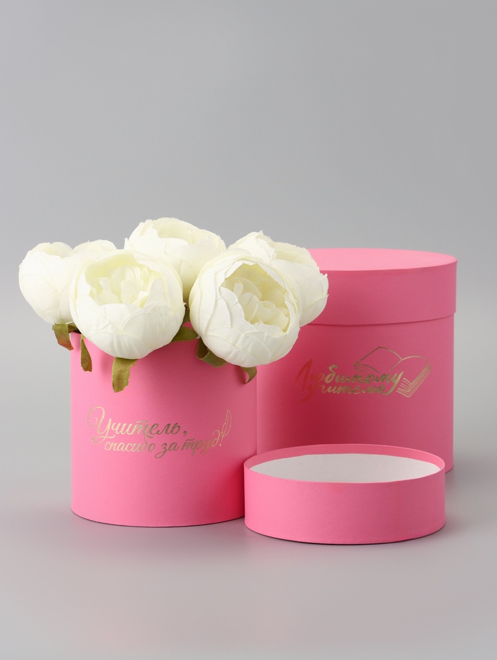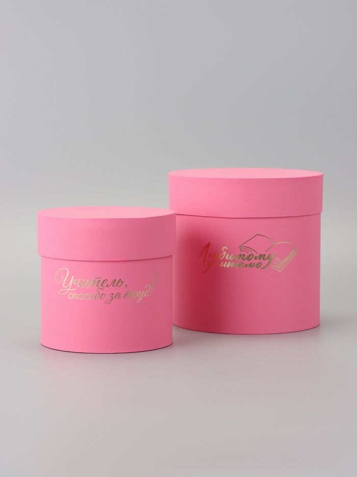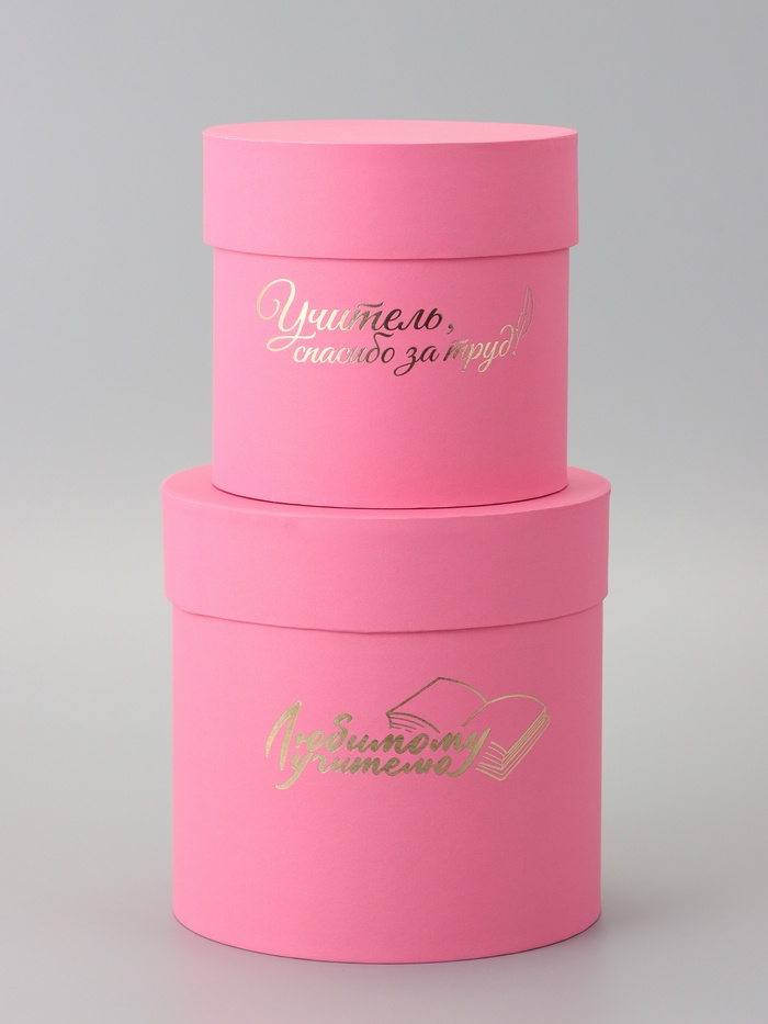 Нежный и стильный вариант для подарка педагогу! Набор круглых коробок «Учителю» в розовом цвете — это готовое решение для упаковки презентов ко Дню учителя. Две коробки разного размера с тематическим принтом создают гармоничную композицию.