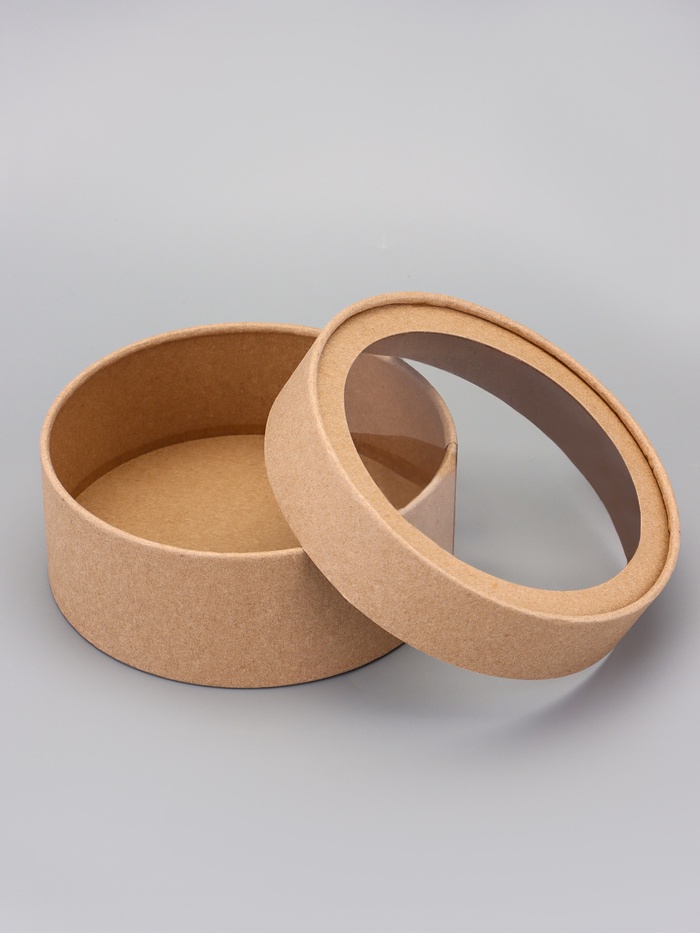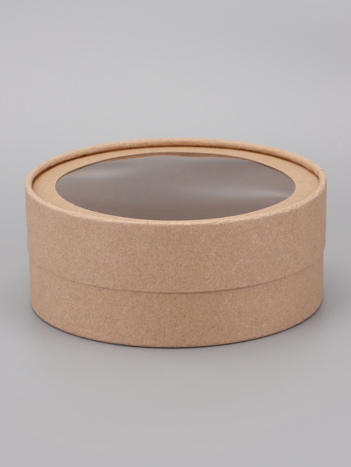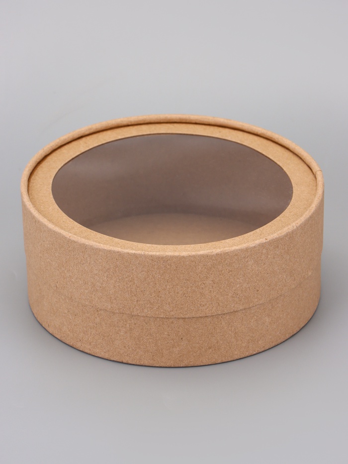 Коробка круглая подарочная, завальцованная с окном, крафт, 15×6 см