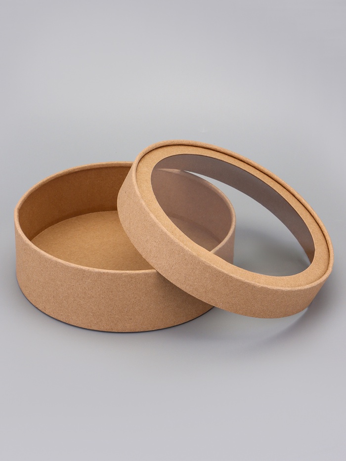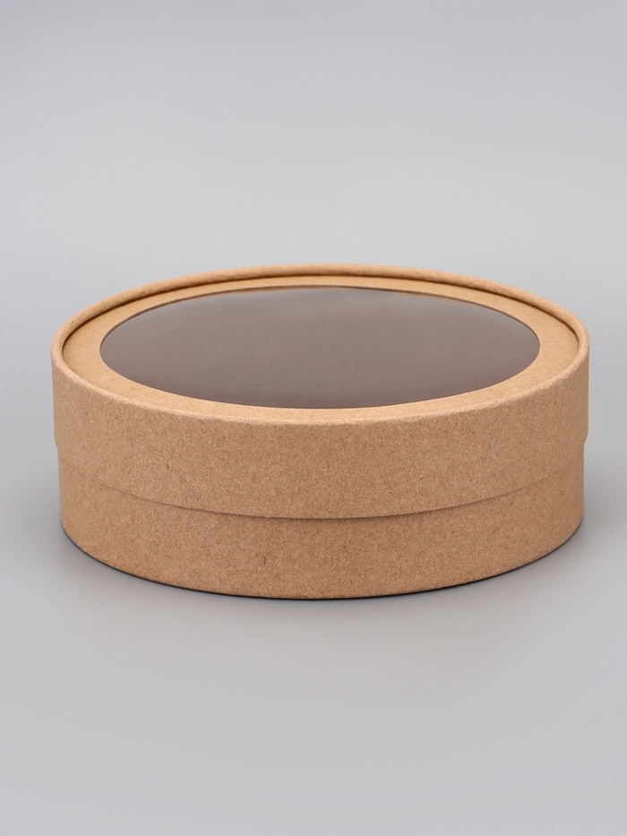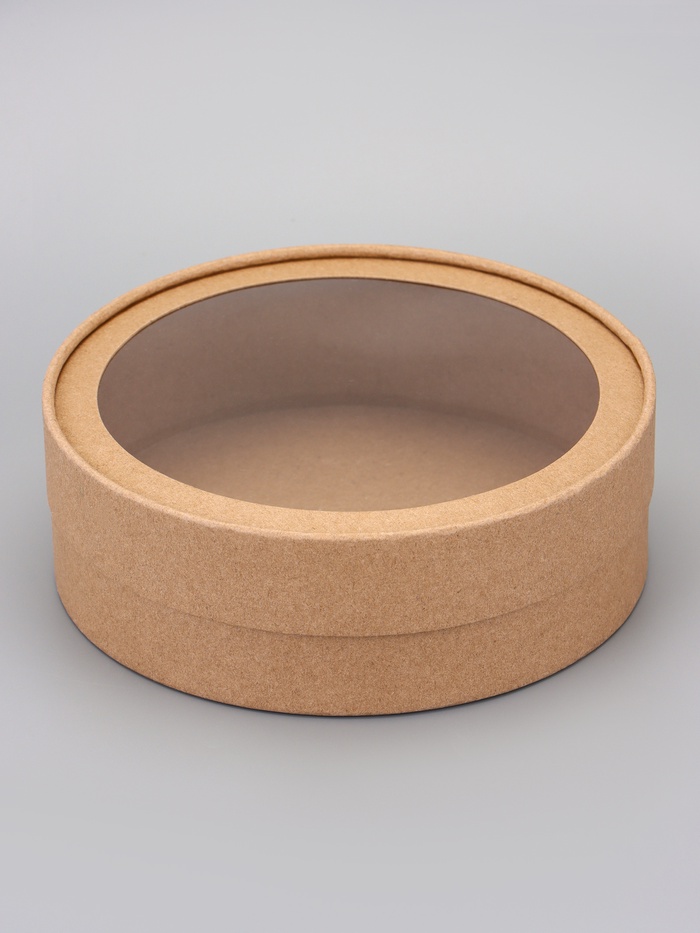 Коробка круглая подарочная, завальцованная с окном, крафт, 15×6 см
