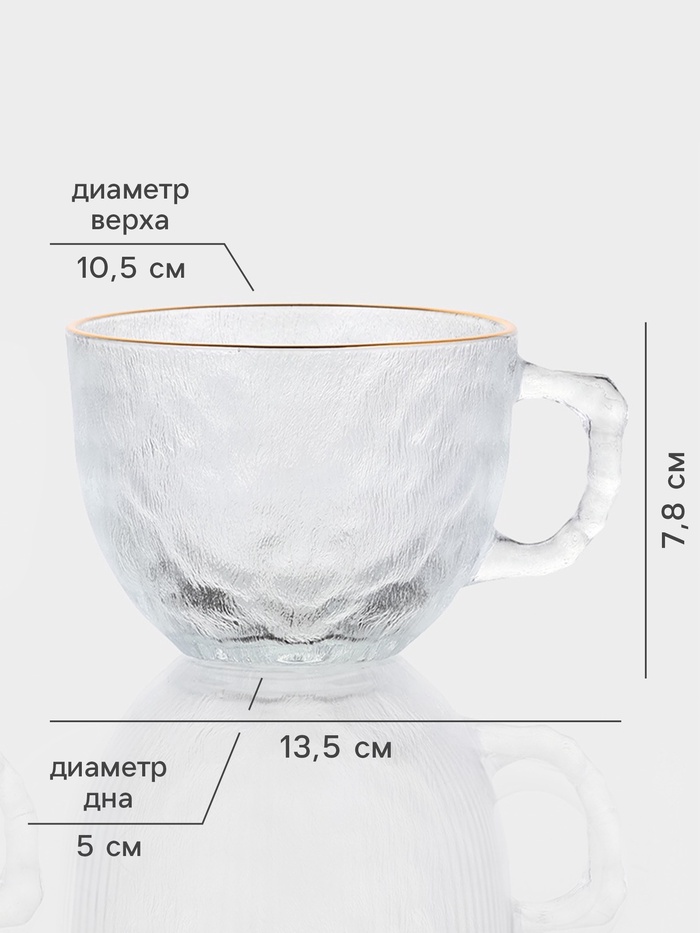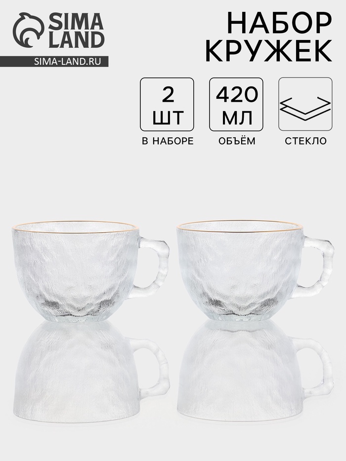 Лёгкость в повседневных моментах! Набор стеклянных кружек с золотой отводкой – это пара прозрачных изделий объёмом 410 мл каждое, предназначенная для наслаждения напитками в домашних условиях.