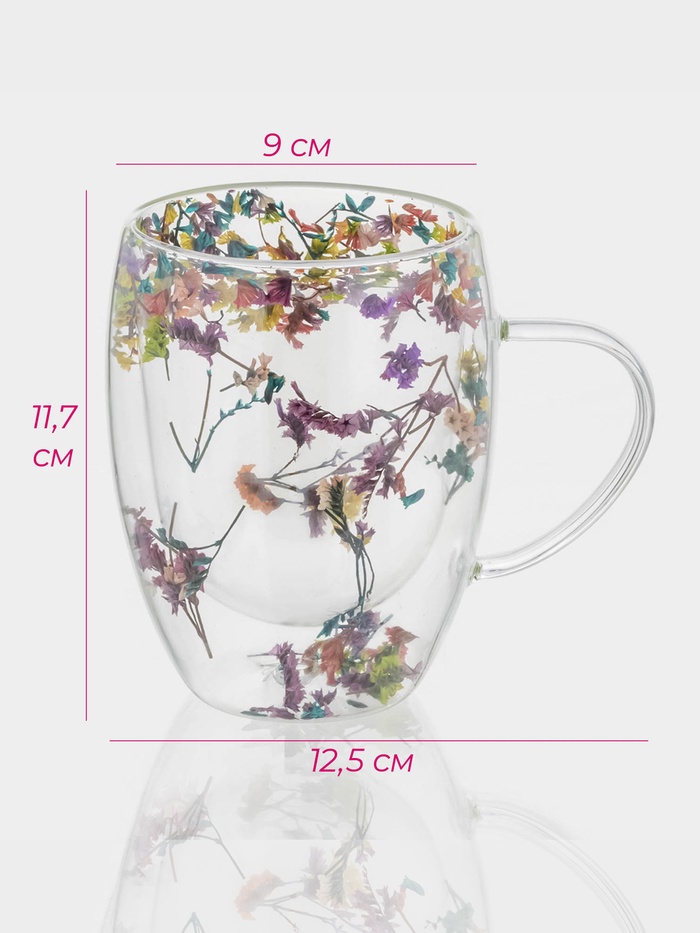 Набор кружек с двойными стенками «Сухоцвет» — идеальный выбор для любителей чая и кофе. Прозрачный дизайн и нежные сухоцветы делают эти кружки изысканными и элегантными. Благодаря вместительности, они подходят для больших порций напитков. Двойные стенки обеспечивают теплоизоляцию и предотвращают обжигание рук.