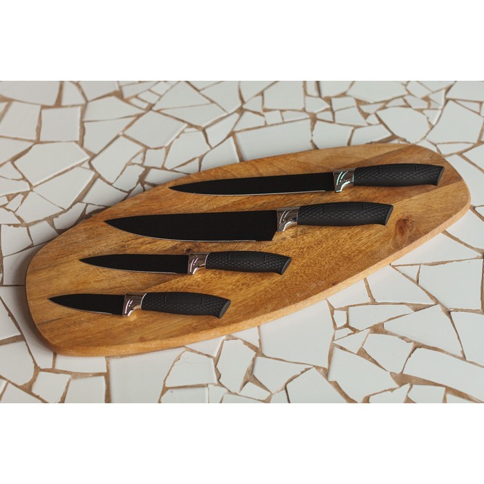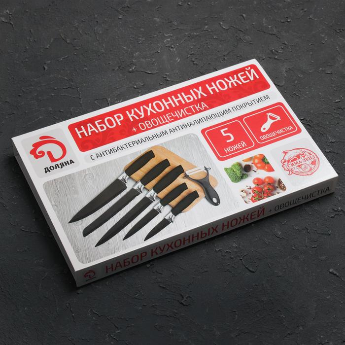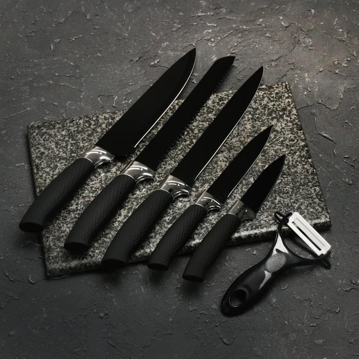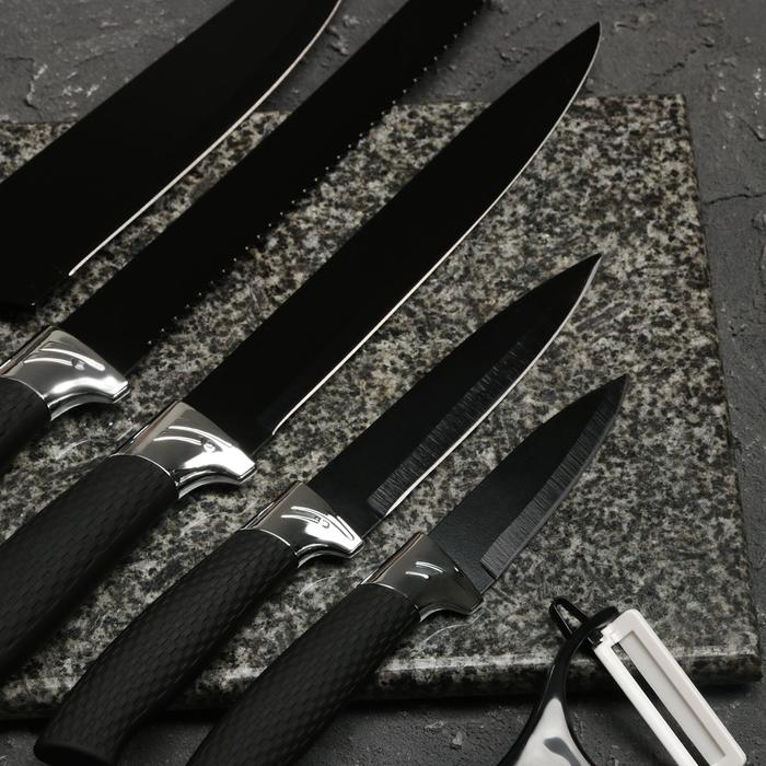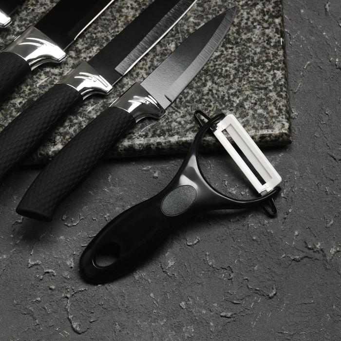 Набор кухонных принадлежностей Доляна «Супер-блек», 6 предметов: ножи 19 см, 23 см, 32 см, 32 см, керамическая овощечистка, 32×4 см, чёрный