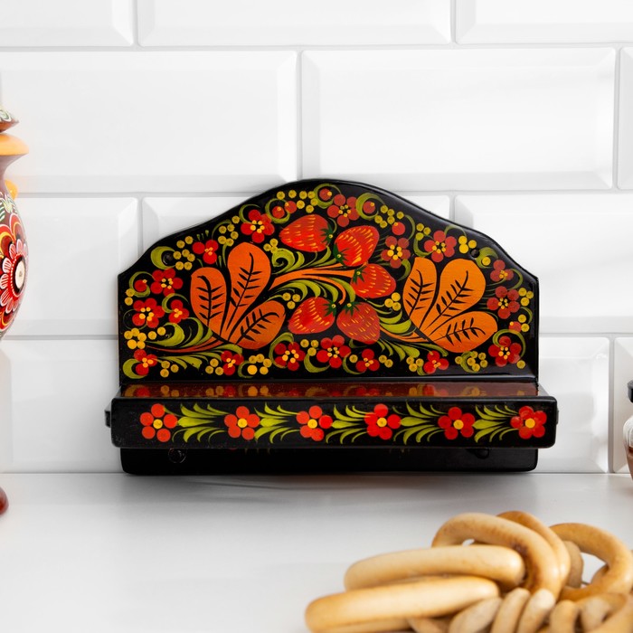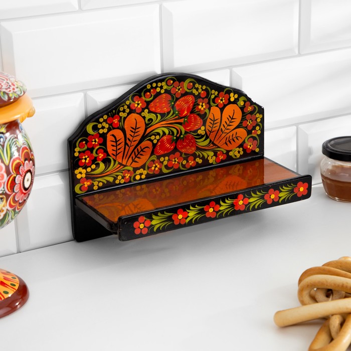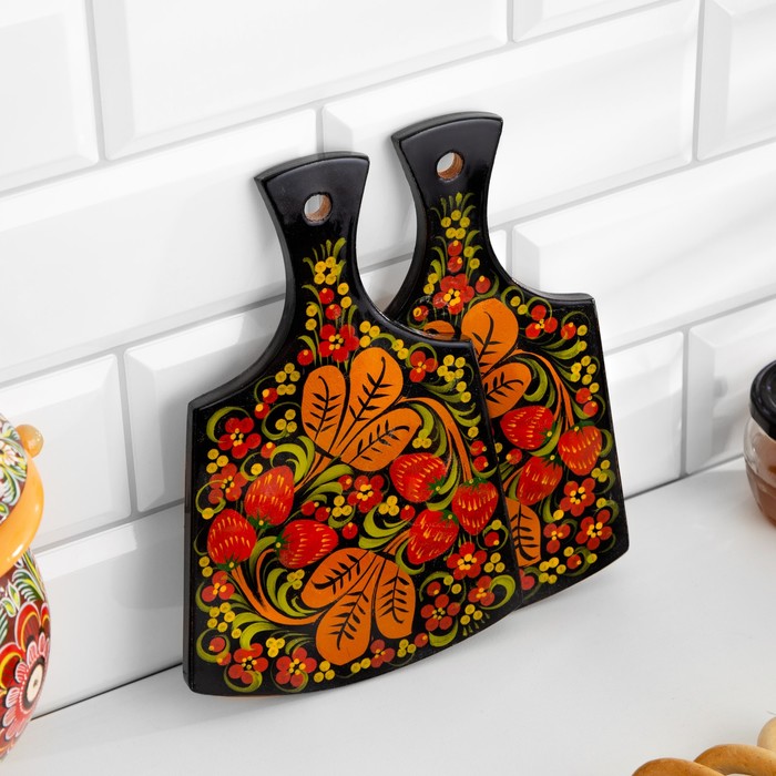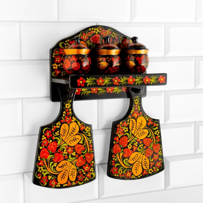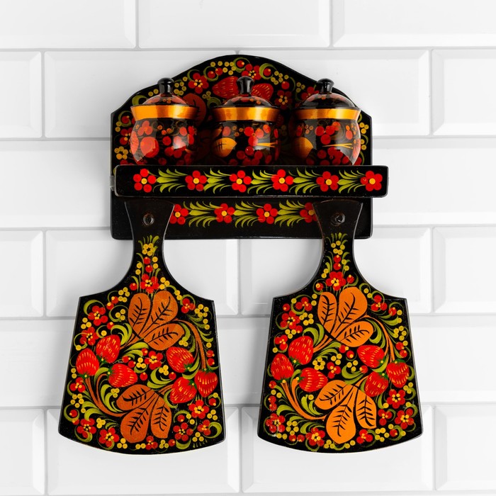 Набор кухонных принадлежностей «Земляничка», 6 предметов: 2 доски, 3 банки, подставка, дерево, хохлома
