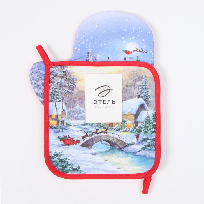 Набор кухонный новогодний «Этель. Рождественский вечер»: прихватка 19×19 см, варежка-прихватка 20×28 см