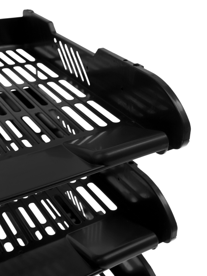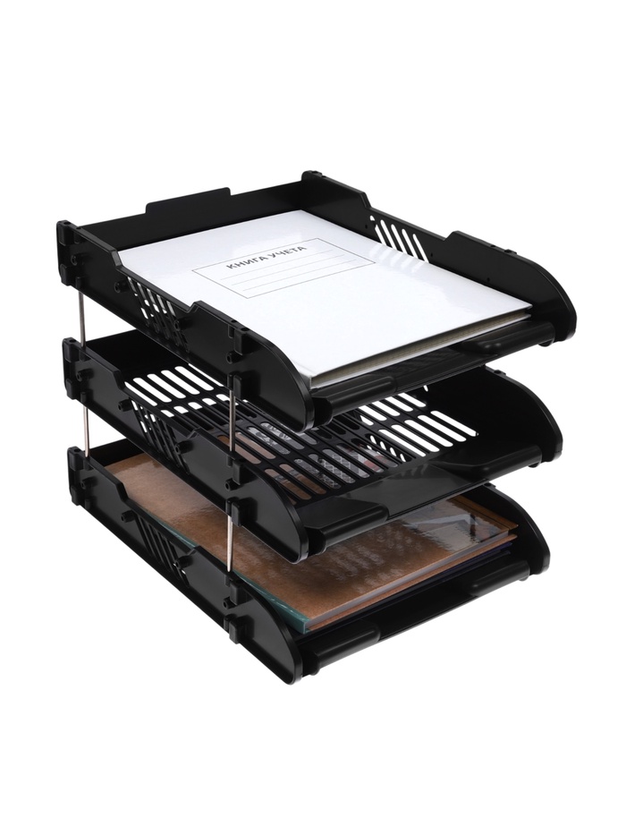 Набор лотков для бумаг, 3 штуки, горизонтальные, на металлических стержнях, чёрные