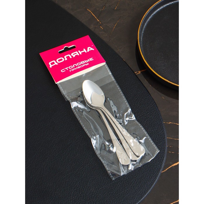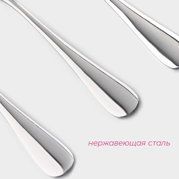 Набор ложек кофейных из нержавеющей стали Доляна, h=12.4 см, толщина 2.2 мм, 410 сталь, 3 шт., серебристый