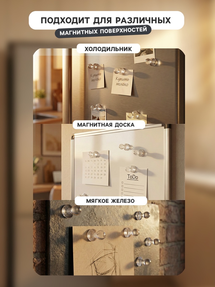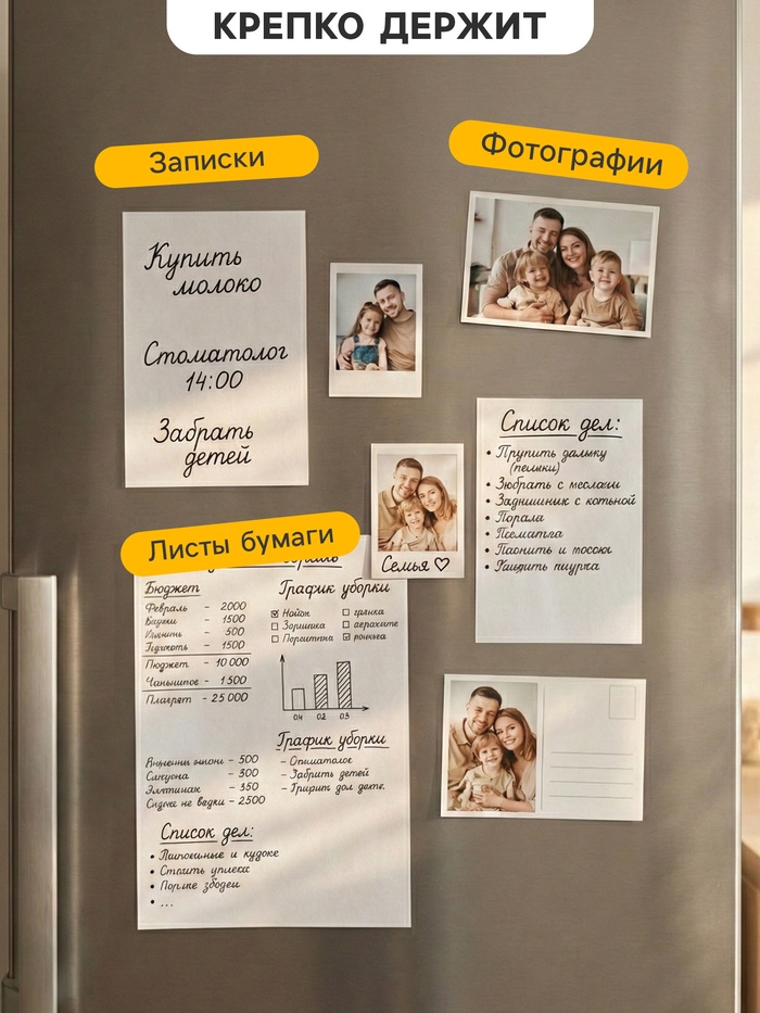 С их помощью вы легко превратите дверцу холодильника или магнитную доску в функциональный центр. Закрепляйте важные напоминания, рецепты, планируйте неделю или создавайте постоянно меняющуюся галерею из фотографий. Набор станет практичным инструментом для визуального планирования и источником идей для совместных занятий с детьми.