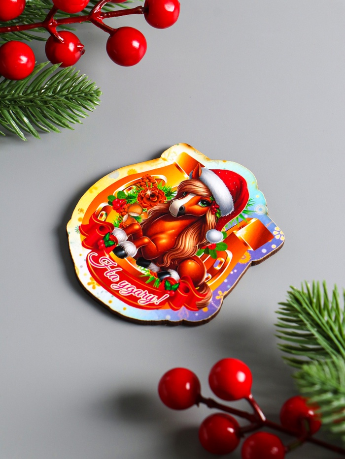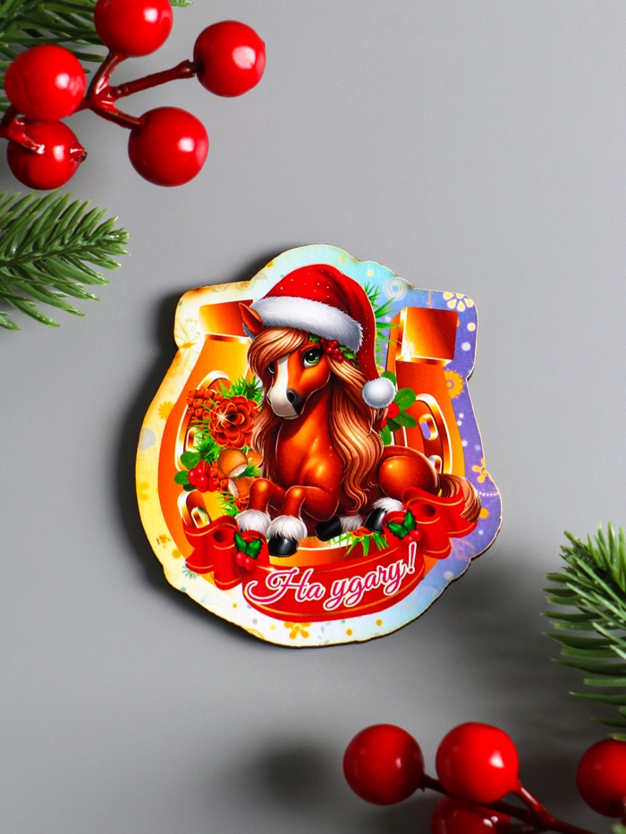 Магнит на холодильник «Новогодняя лошадь. Удачи в дом», 9.5×6.5 см