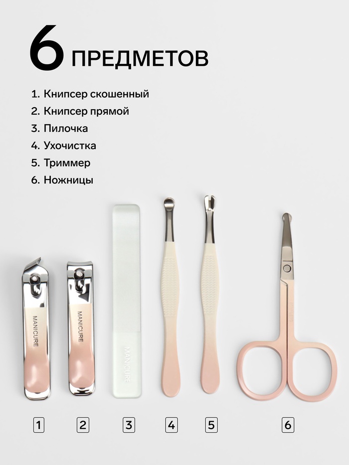 Комплект из 6 предметов, с помощью которых Вы сможете придать ногтям аккуратный и ухоженный вид, хранится в удобном футляре.