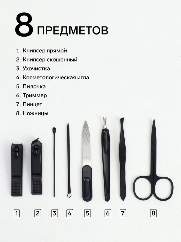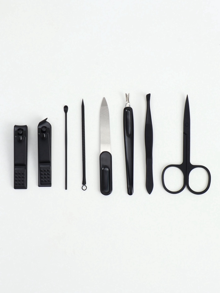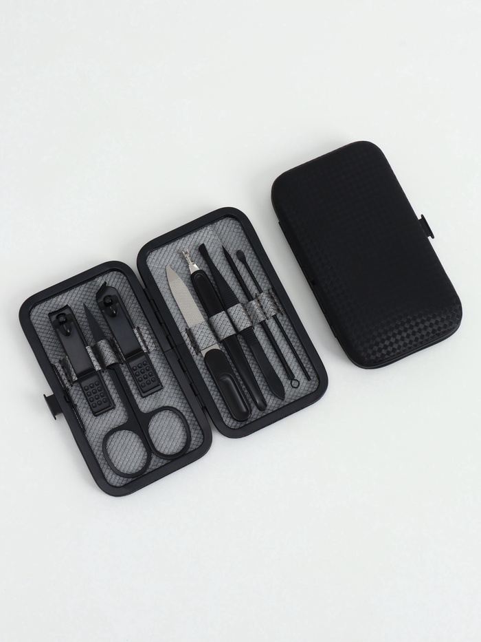 Маникюрный набор в двухцветном футляре — это сдержанная элегантность и профессиональный подход к уходу за руками. Серо-чёрное сочетание искусственной кожи и нержавеющей стали создаёт гармоничный образ, одинаково подходящий и для женской косметички, и для мужского дорожного багажа. Восемь инструментов решают все задачи по обработке ногтей и кутикулы.