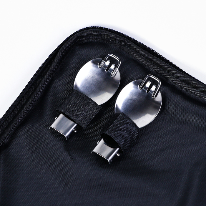 Набор посуды, которого хватит для целой семьи или компании, очень просто и эргономично упаковывается в компактную сумку. Благодаря тому, что каждому предмету в ней отведено строго определенное место, вы точно ничего не забудете, собираясь в дорогу.