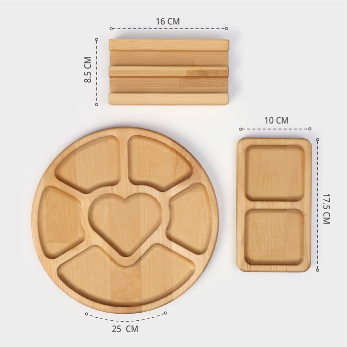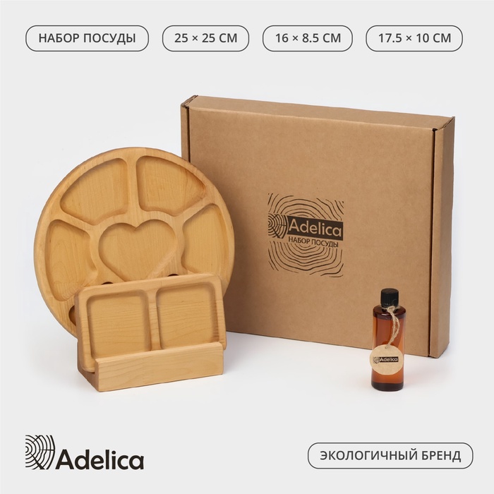 Набор менажниц деревянных Adelica, 6 секций, 2 секции, подставка для посуды, масло в подарок, берёза