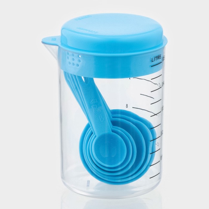 Экономия места, точная ёмкость для удовлетворения потребностей различной дозировки. Контейнер с крышкой, с опциями процеживания, наливания или закрытия контейнера.