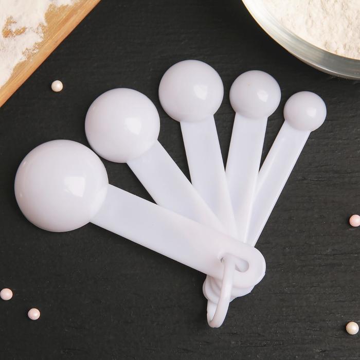 Набор мерных ложек Доляна, 5 шт: 1,25/2,5/5/7,5/15 мл, цвет МИКС придется кстати каждой хозяйке, любящий порядок и аккуратность во всем. Миниатюрные изделия из пищевого пластика предназначены для замера сыпучих продуктов и жидких ингредиентов.