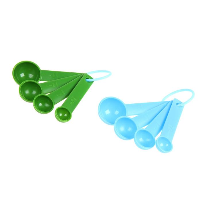 В предложенный комплект входят ложки разного размера (объем указан на лицевой стороне ручки). Яркие инструменты украсят кухню свежими красками.