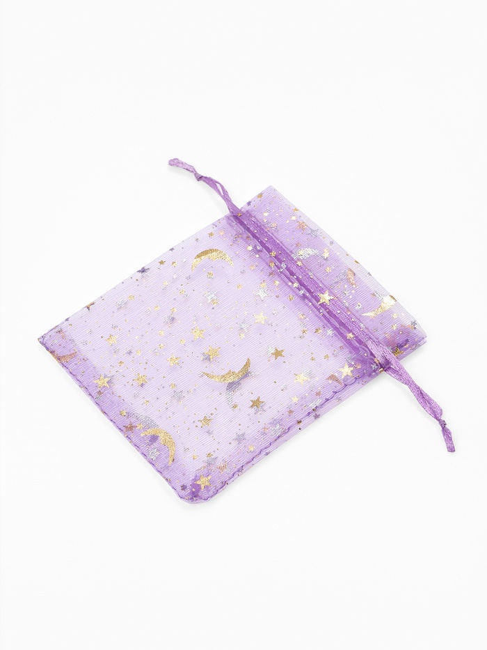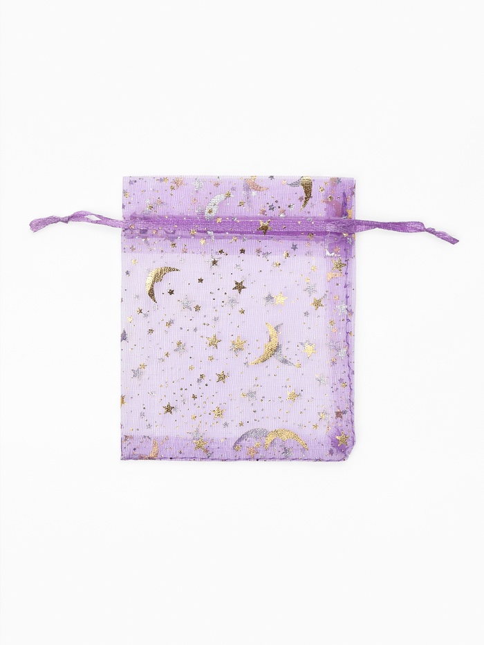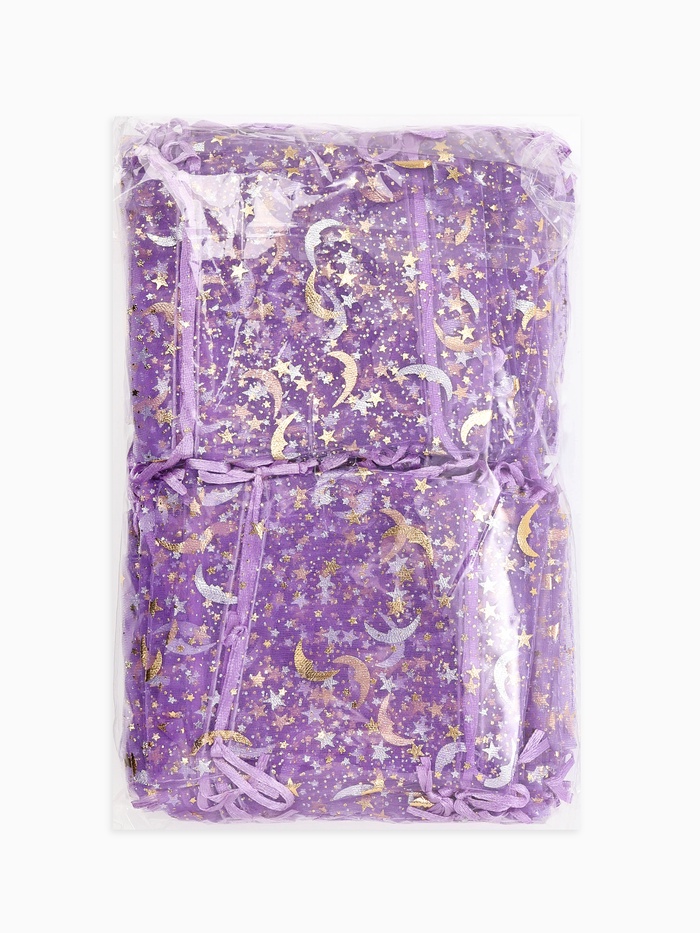 Набор мешочков подарочных 100 шт. «Звёзды с месяцем», 10×12.5 см, фиолетовый с золотом