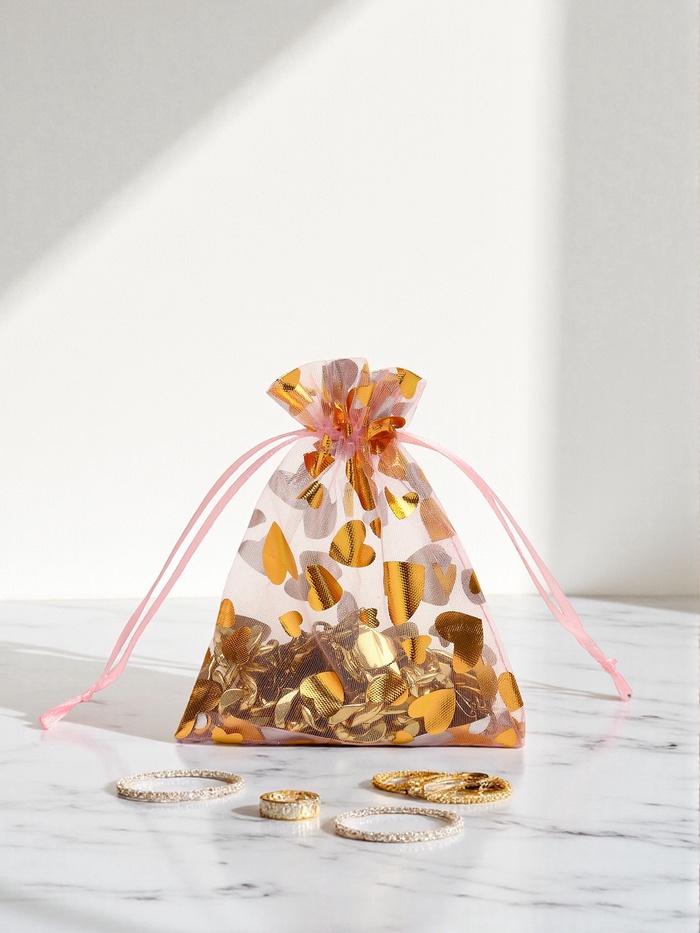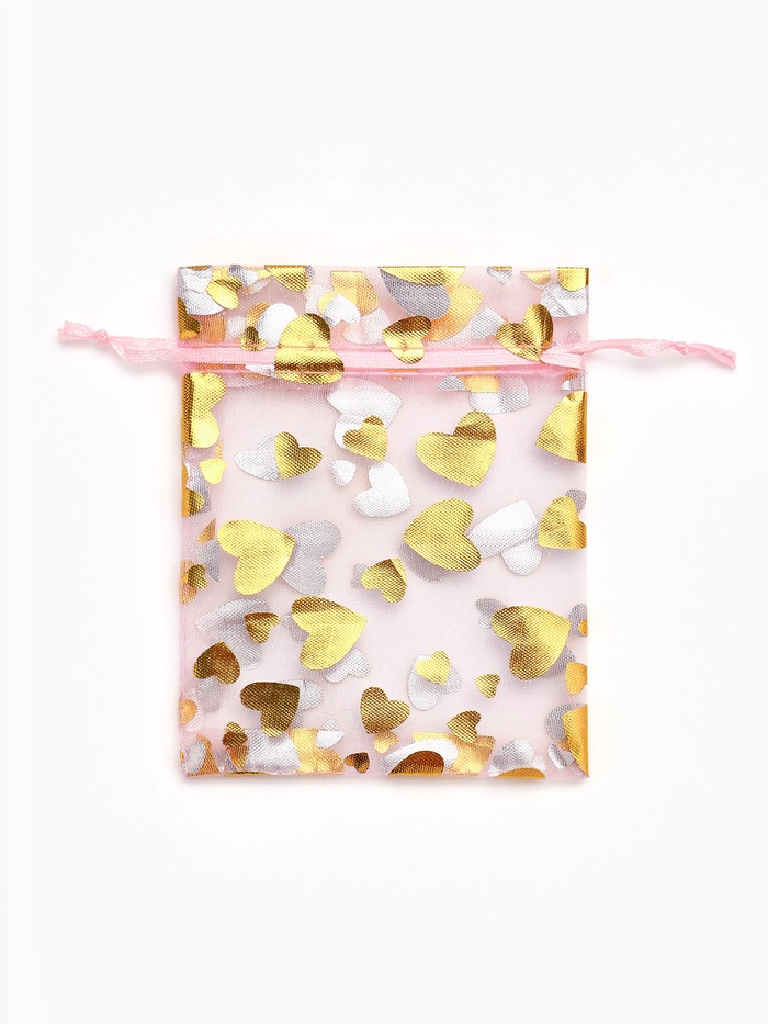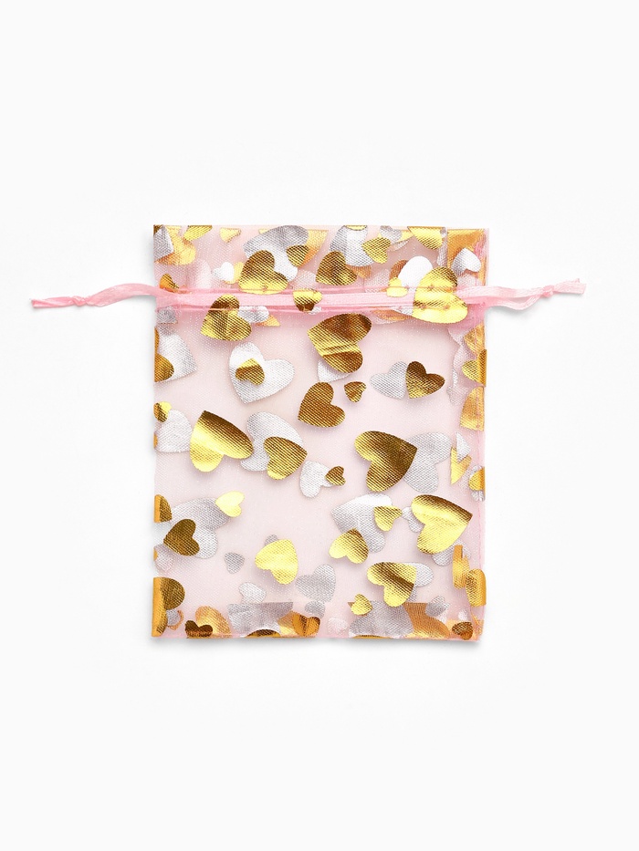 Набор мешочков подарочных 100шт. "Сердечки", 10*12, цвет розовый с золотом (4621385)