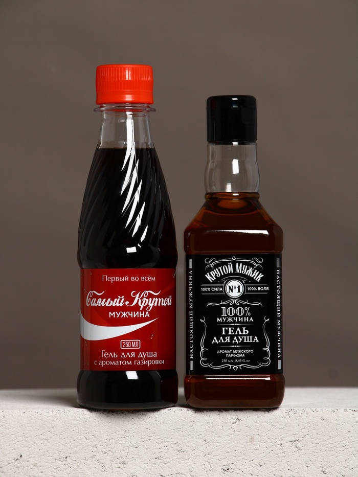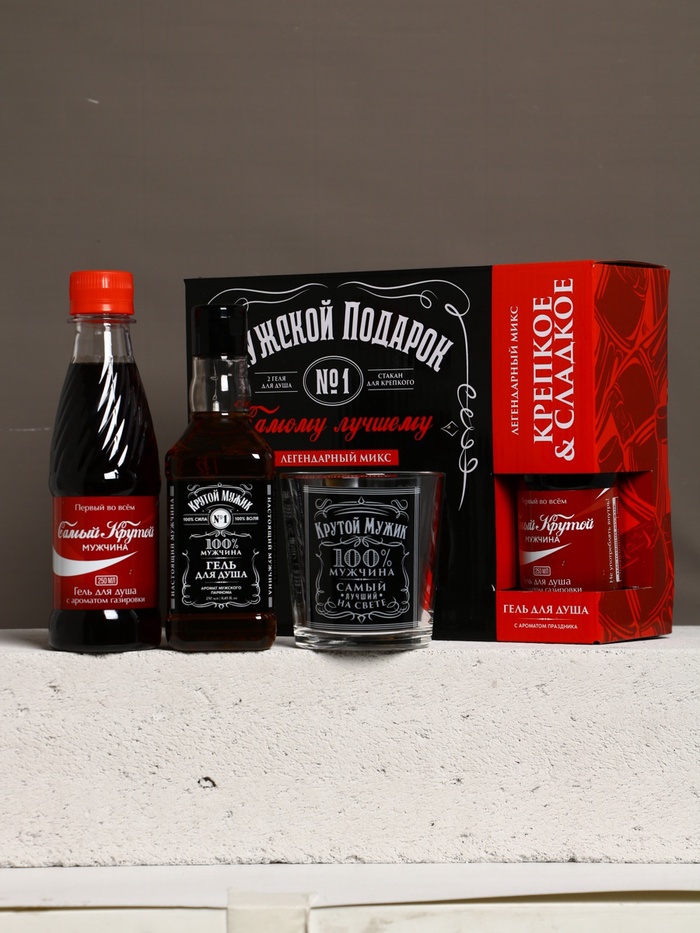 Набор "Мужской подарок", гель для душа виски, гель для душа кола, стакан для виски