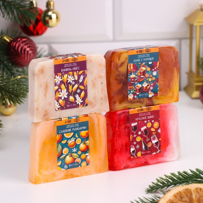 Подарите себе и своим близким радость нежного ухода с новогодним набором мыла ручной работы – сочетанием заботы, красоты и праздничного волшебства!