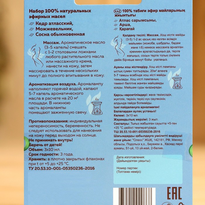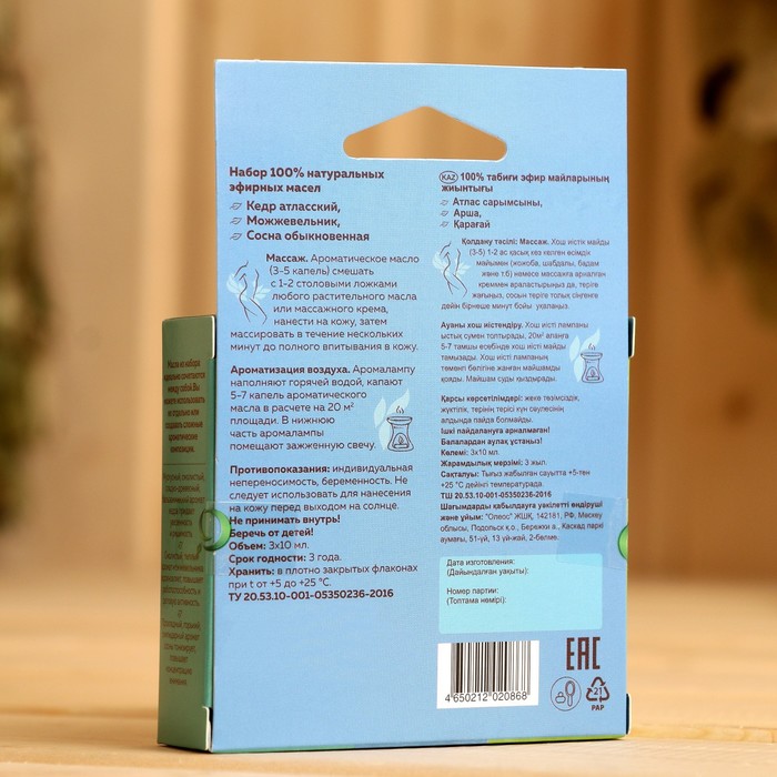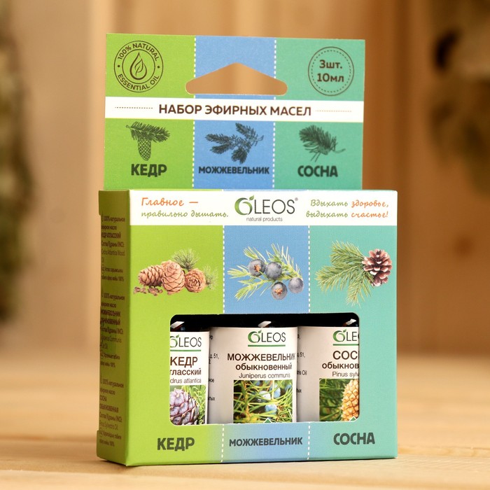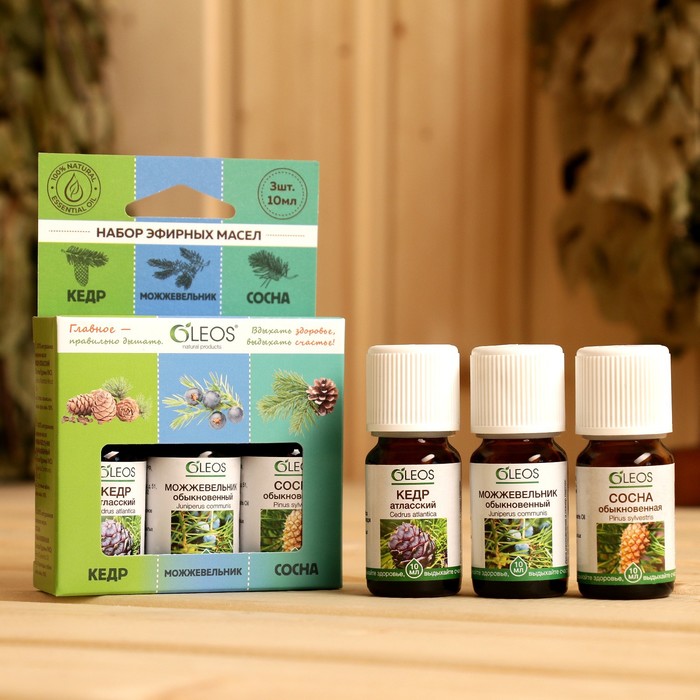 - Комплект из трёх ароматов: кедр, можжевельник, сосна.