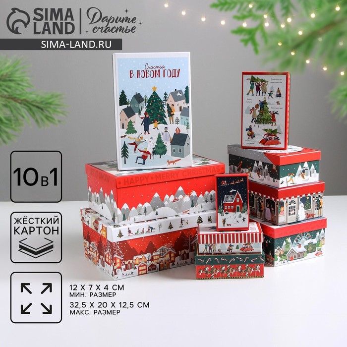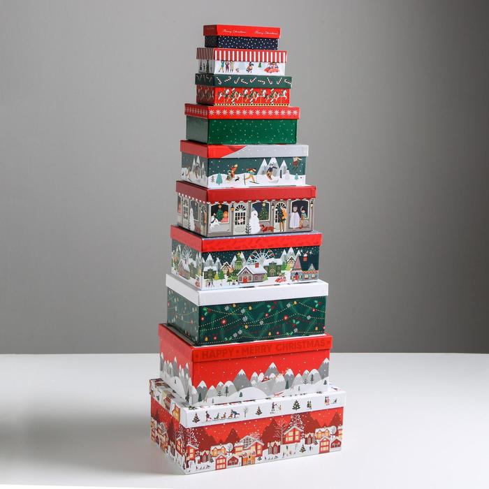Набор новогодних подарочных коробок 10 в 1 «Новогодние истории», 12 х 7 х 4 - 32.5 х 20 х 12.5 см, Новый год