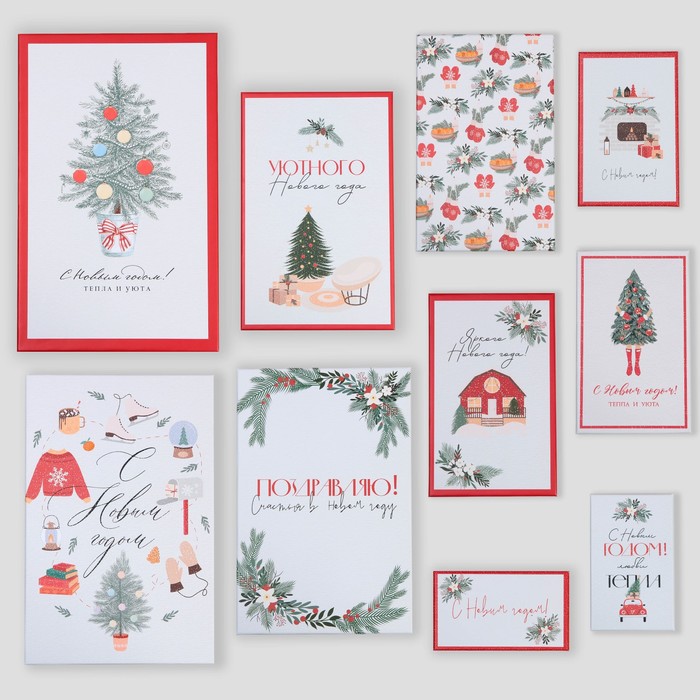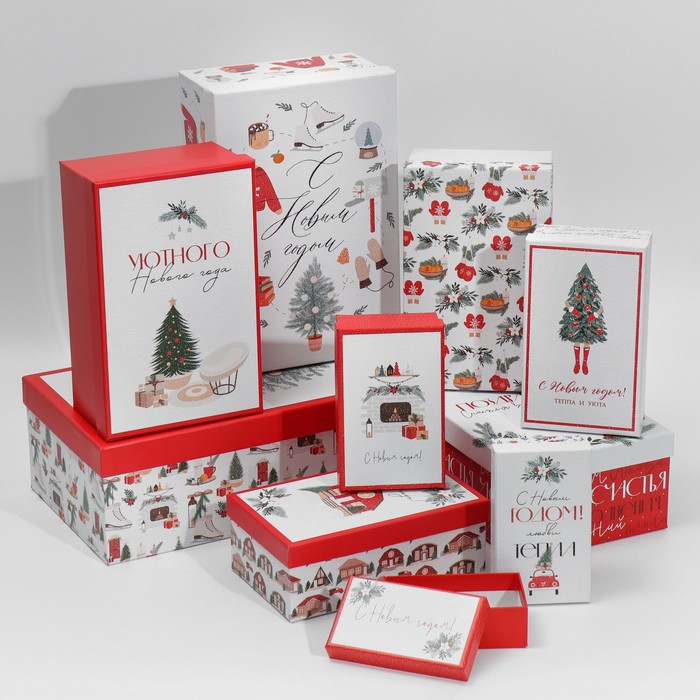 Набор новогодних подарочных коробок 10 в 1 «Тепла и уюта», 12 х 7 х 4 - 32.5 х 20 х 12.5 см, Новый год