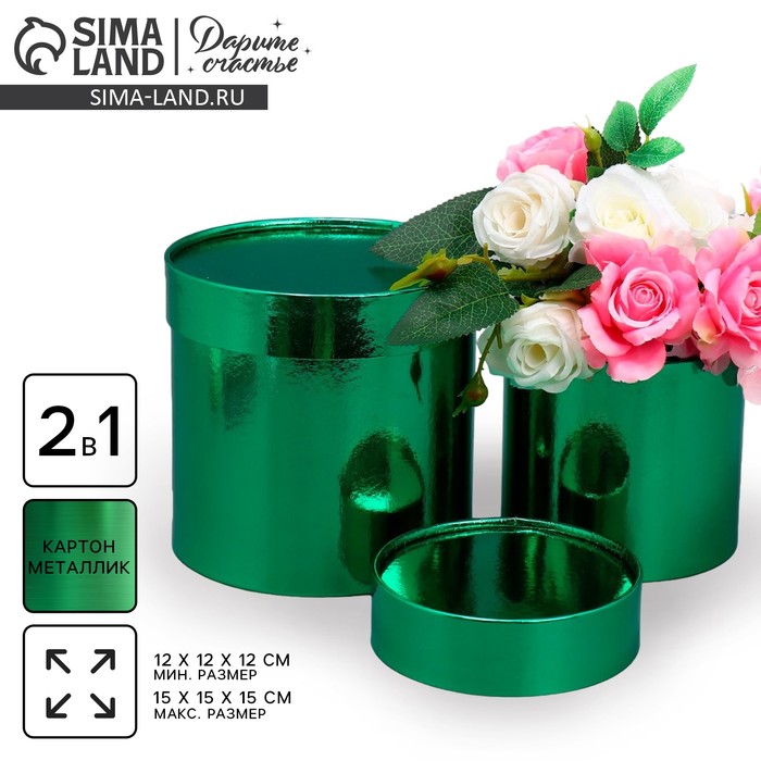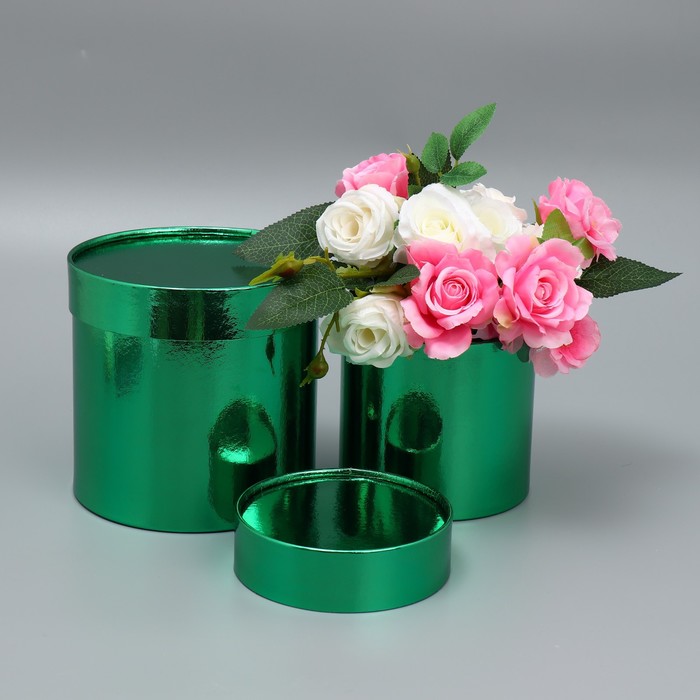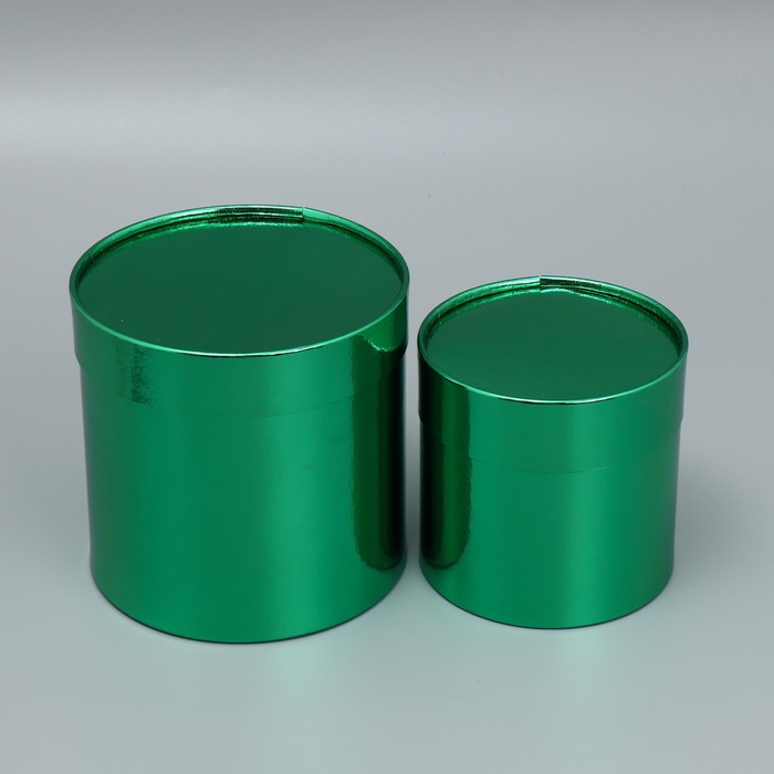 Набор новогодних подарочных коробок 2 в 1 круглые «Однотонный», зелёный металлик, 12 х 12, 15 х 15 см