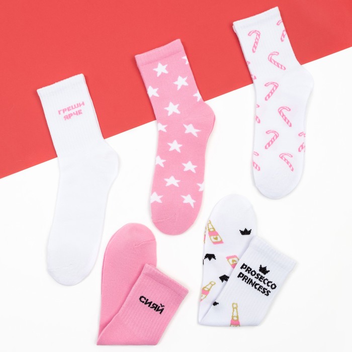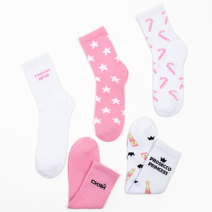 Набор новогодних женских носков "Самой красивой" размер 36-39 (23-25 см), 5 пар