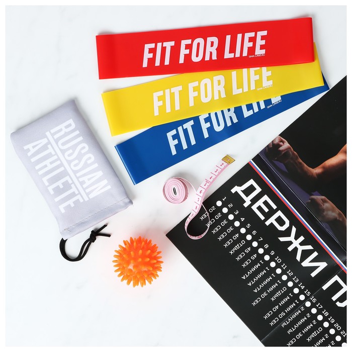 Набор ONLITOP «Фитнес-набор»: фитнес-резинки 3 шт., чехол, измерительная лента, массажный шар, календарь тренировок