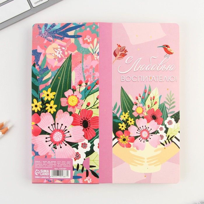 Набор открыток с местом под шоколадку, 5 штук "С любовью воспитателю!"