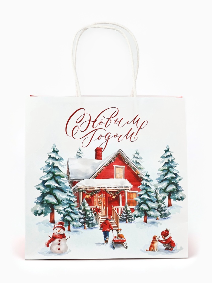 Набор пакетов крафтовых «Новогодний», 10 шт, 22 × 22 × 11 см