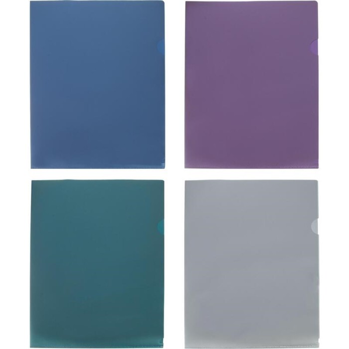 Набор папок уголков, А4, 200 мкм, 4 штуки, Calligrata TOP Mistral, металлик микс, тиснение «под кожу», непрозрачные