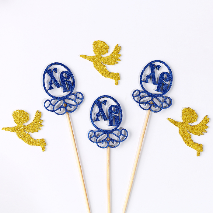 Набор пасхальных топперов «ХВ», 3 шт., синие, 14.5 см, ангелы золотые 4.5 см