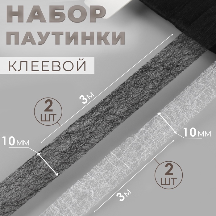 В наборе 12 метров паутинки:- Паутинка 10 мм, 3 м, цвет чёрный - 2 шт.
