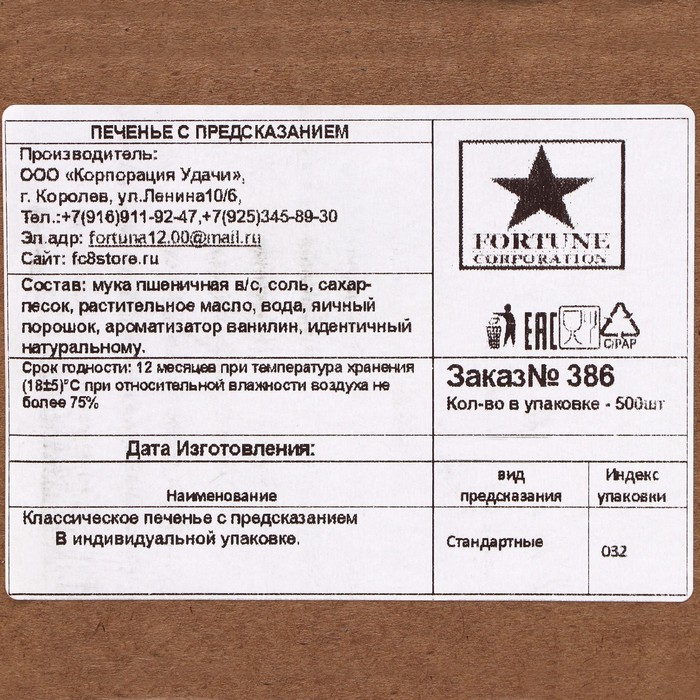 Это печенье представляет собой небольшое хрустящее лакомство, в котором запечен листочек с предсказанием. Печенье может стать не только вкусным десертом, но и отличным вариантом подарка близкому человеку. Он обязательно оценит неординарный подход, а оригинальная надпись-сюрприз оставит после себя массу положительных эмоций!