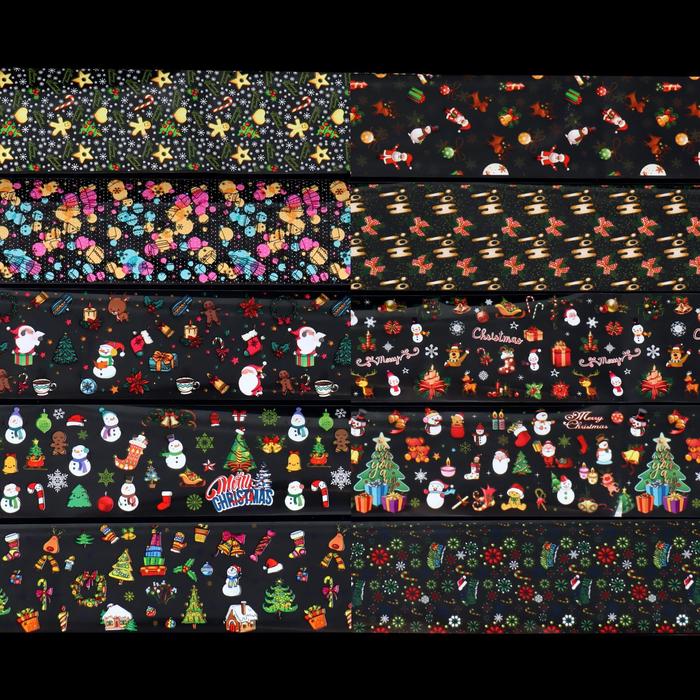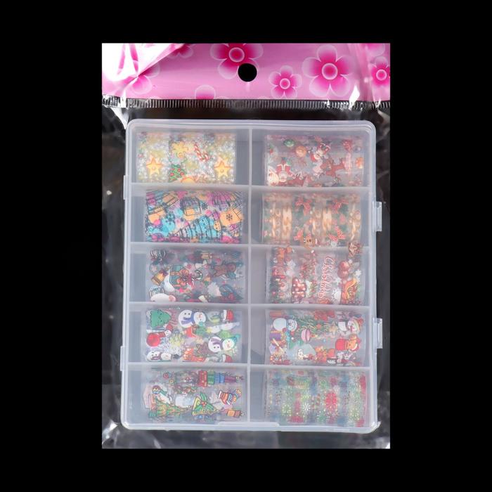 Набор переводной фольги для дизайна ногтей «Праздничное ассорти», 4 × 50 см, 10 шт, в пластиковом органайзере