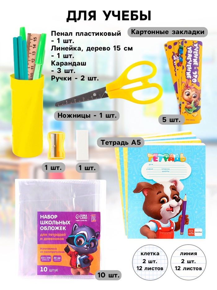 - Набор обложек для тетрадей - 10 шт.;