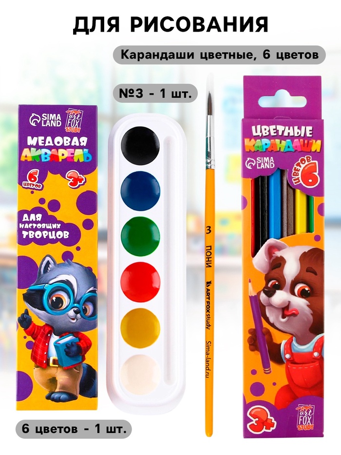 - Акварель медовая, 6 цветов - 1 шт.;