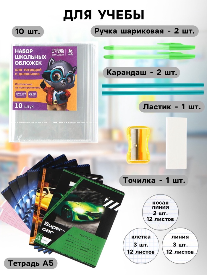 - Тетрадь, А5,12 листов, клетка - 3 шт.;
