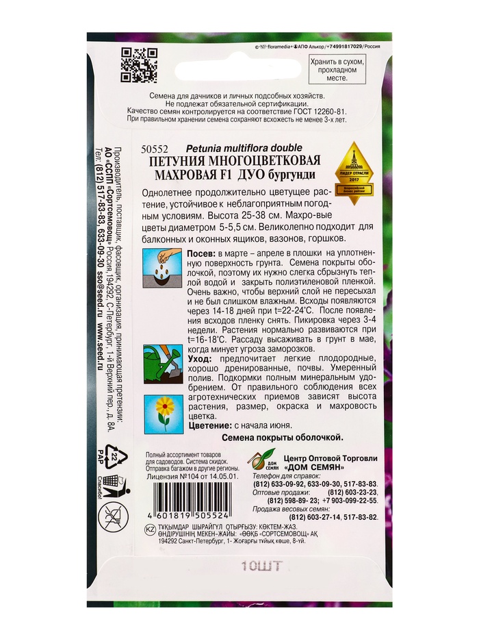Набор Петуния махровая многоцветковая F1 Дуо, бургунди, 10 семян (362343983) ОЗ