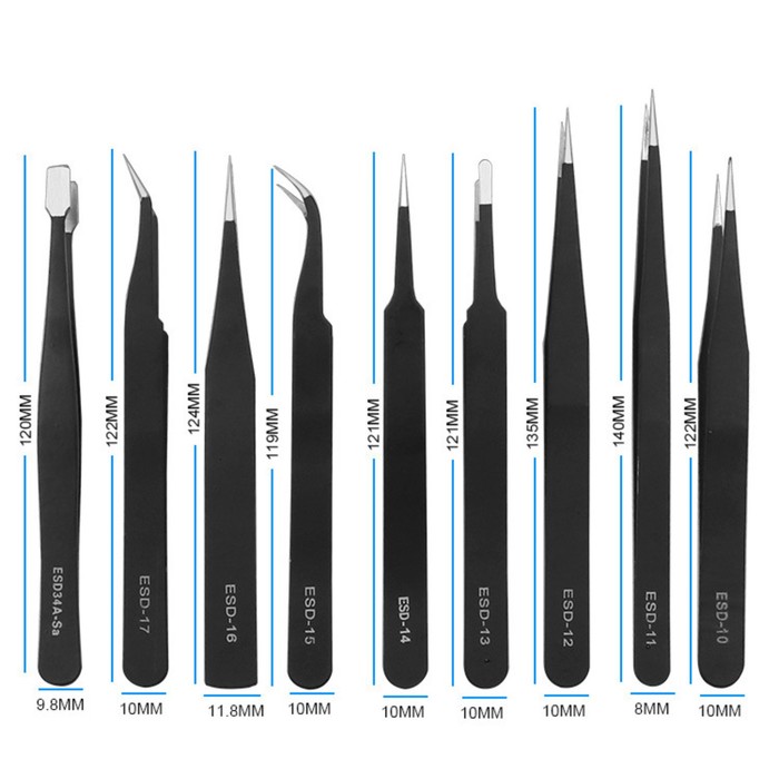 Набор пинцетов для ремонта часов. Подойдет также для творчества, работы с электроникой. Инструменты позволяют захватывать и присоединять мелкие предметы: стразы, бусины, элементы алмазной мозаики, болты, детали аппликации и т.д. Используются при изготовлении бижутерии, алмазной вышивки, мозаики, бисера, моделирования радиосхем, мелких деталей, изготовления бижутерии и других видов декоративно-прикладного творчества.